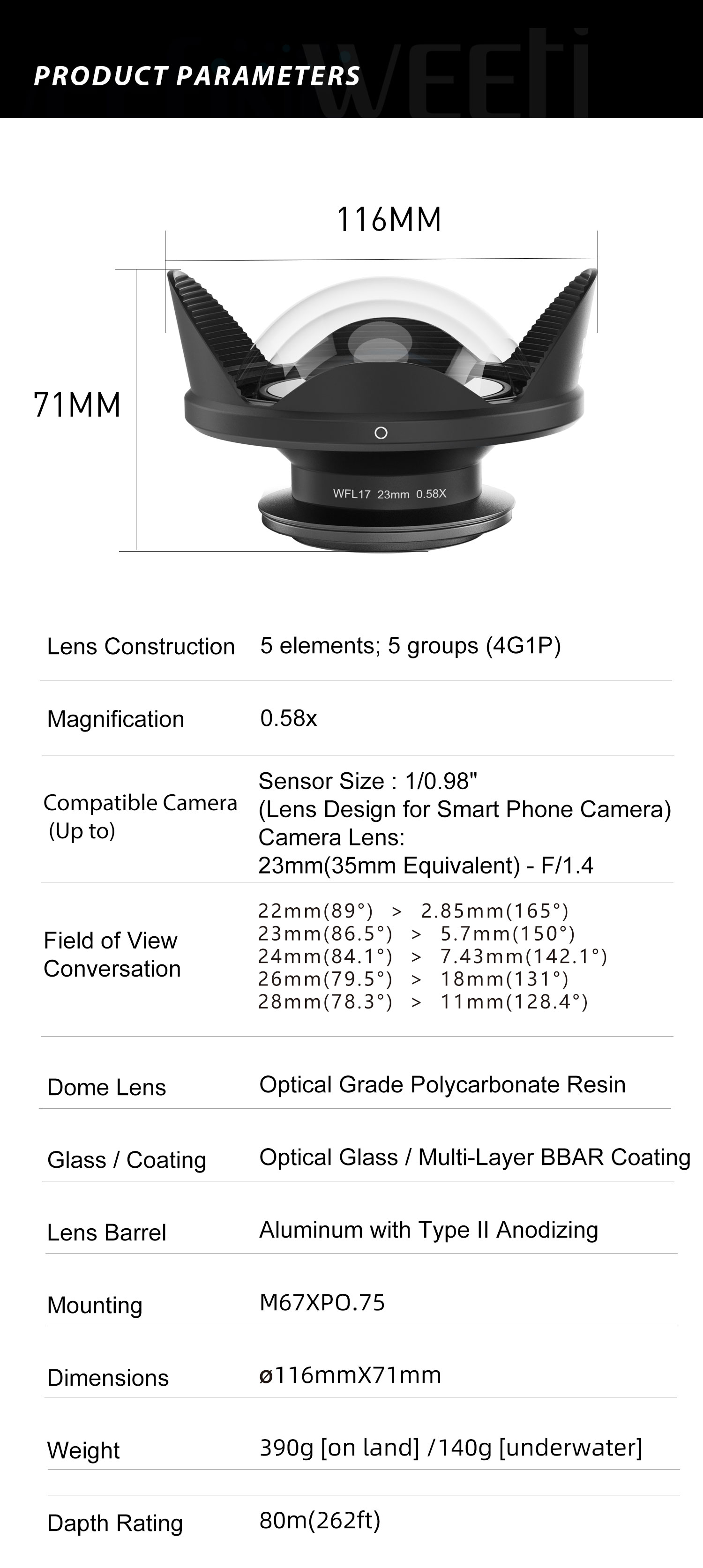 Weefine WFL17 手机广角镜